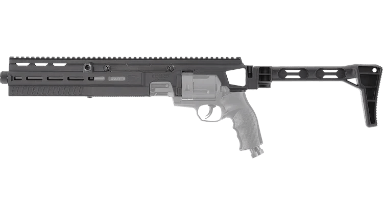 Das T4E Carbine Conversion Kit erweitert die Einsatzmöglichkeiten der T4E TR 68 erheblich und verwandelt den Revolver in ein kompaktes Karabinersystem mit verbesserter Ergonomie und erweiterten Zubehörmöglichkeiten.