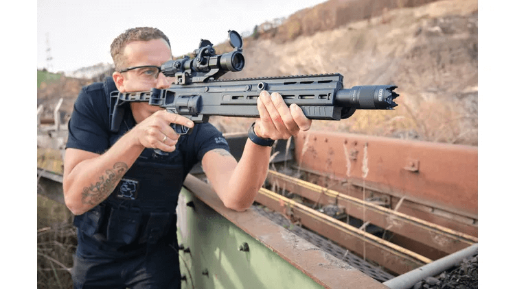 Auf der Oberseite befindet sich eine durchgehende Picatinny-Toprail, die sich ideal zur Montage von Optiken oder Visieren eignet. Ergänzend sorgen M-LOK-Slots am Vorderschaft für eine hohe Kompatibilität mit Zubehör wie Zweibeinen, Lasern oder Lampen.