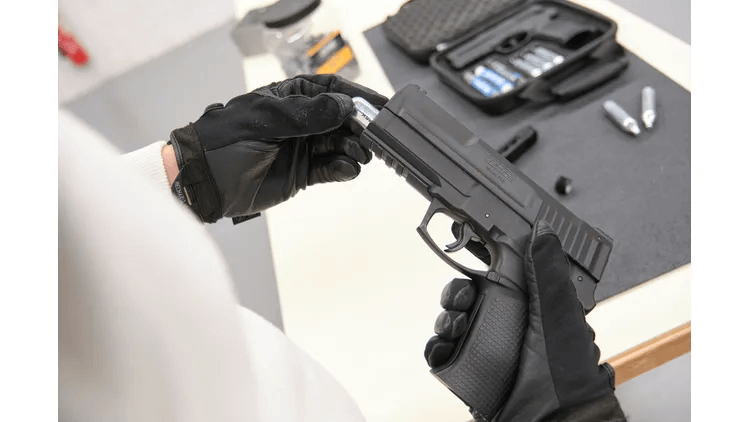 Für zusätzliche Sicherheit verfügt der Marker über mehrere Sicherungen. Die Magazinsicherung verhindert das Betätigen des Abzugs ohne eingesetztes Magazin, während die Abzugzüngelsicherung zusätzlichen Schutz bietet.