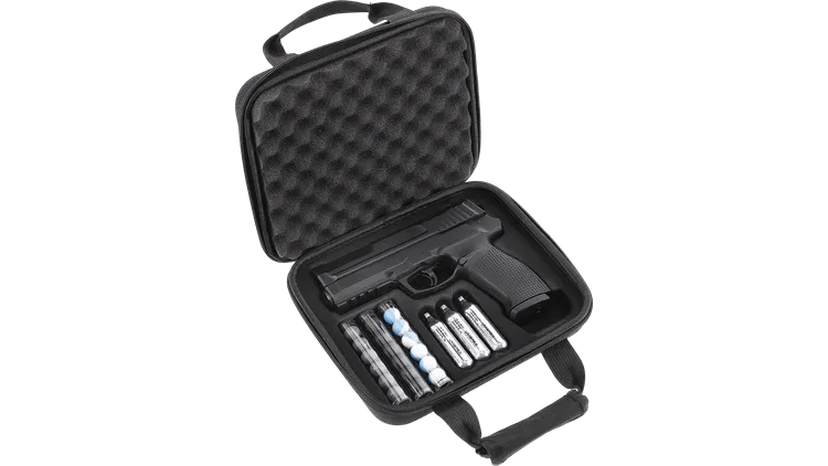 Die 12 g CO₂-Kapsel befindet sich nicht im Griff, sondern unter dem Lauf. Diese Bauweise ermöglicht einen schlanken Griff mit ausgezeichneter Ergonomie. Ein integriertes Werkzeug am Magazin erlaubt das einfache Lösen und Festziehen der Kapselschraube. Zusätzlich verhindert der integrierte Überdrehschutz (STS – Set Torque Seal Technology) zuverlässig ein zu starkes Anziehen der CO₂-Schraube.